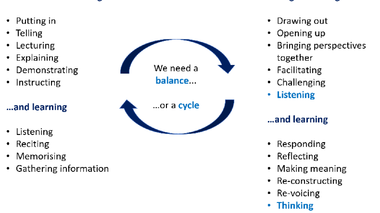 Even when the knowledge we are engaging with is seen to be established and uncontestable, the student should be actively involved in making sense of it. Take the scientific perspective on the concept of energy, which may well conflict with the student’s everyday understanding of the term. There is a place for authoritative, transmissive teaching of the concept – telling, demonstrating, and explaining; this is essential, but not sufficient. If the teacher’s knowledge is to become the student’s knowledge, the student needs to be called out to think, respond, reflect, re-construct their understanding, to give voice to their learning. Ultimately, students and teachers have to reason together across the gap of difference in their understandings. Reason across difference is a pretty good definition of dialogue.