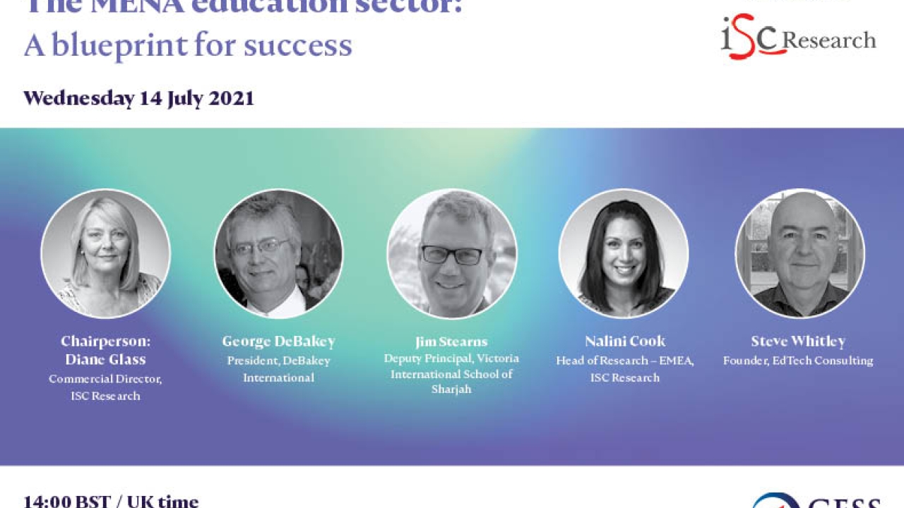 Taking place on Wednesday 14 July, 14:00 BST / UK, and in association with ISC Research, the discussion is designed to give companies providing educational supplies and solutions valuable insight into the MENA region's education sector. Find out key trends, market data and intelligence from ISC Research to help better inform your business decisions. You’ll also hear first-hand from experienced education consultants about their experiences working with schools in the market and find out from a school leader about the key takeouts from the past 18 months and the latest trends and shifts in priorities with regards to procuring educational resources. During the webinar you’ll have the opportunity to ask questions and have access to an exclusive International Schools Market in the MENA Region report.