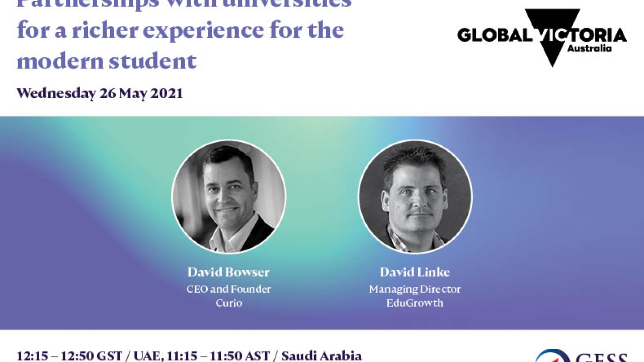 Taking place on Wednesday 26th of May, 12:15 GST / UAE, 11:15 AST / Saudi Arabia, as part of the Victorian EdTech Summit. This session will discuss the advantages for universities of partnering with online program management businesses, the modern student that learns on their own terms, the support infrastructure required for success and the market leadership opportunity for taking education online into new global markets.